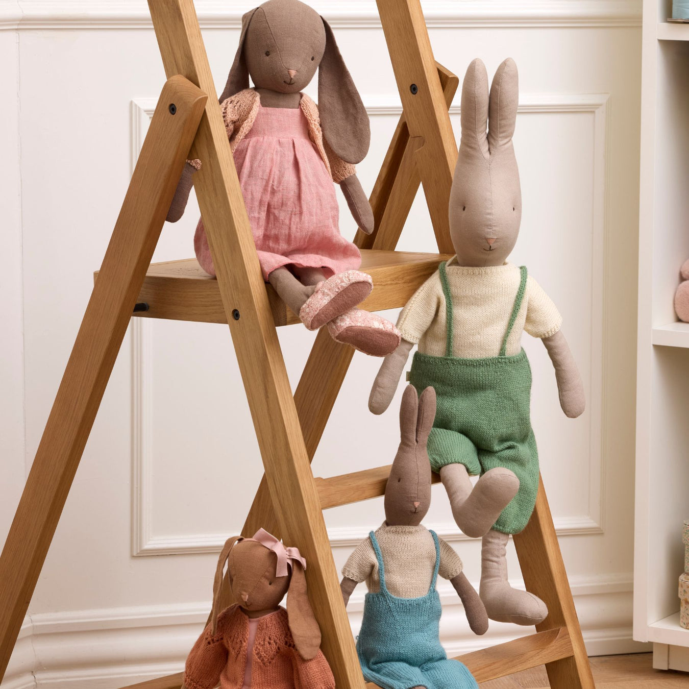 View full detailsThis brown size 4 bunny is dressed for fun in her coral dress, floral print shoes, and matching floral bloomers underneath. Her long floppy ears, s...