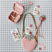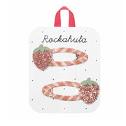 Add a touch of fruity fun to your hair with these Sweet Strawberry Clips! Delicate sparkling pink strawberries with green crowns are sat upon two pink gingham grosgrain ribbon-wrapped snap clips.