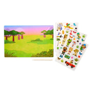 • Transfer sticker kit includes: 1 double-sided playboard scene, sticker sheets with over 60 stickers, and one wooden transfer tool