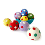 This beautiful handmade Felt Polka Dot Ball from Hamro Village is safe, strong, and colourful. Great for sensory play.
