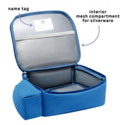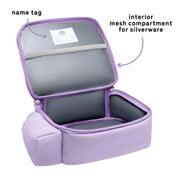 The Uninni Cotton Toddler Lunch Bag will keep food fresh for hours in the fully insulated, zippered main compartment designed to fit a variety of kids' bento boxes, including Yumbox Panino and Original, Lunchbots and Shuttle Planetbox and Rocki Bento boxes.