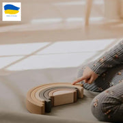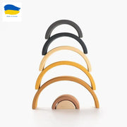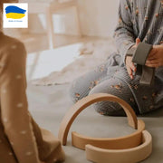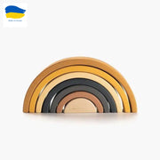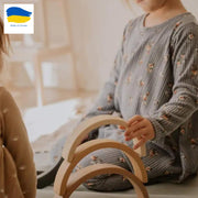With an arch, stacker child develops coordination and hands fine motor skills. Smaller children first play with it like a puzzle: they learn the sizes and try to assemble a full rainbow from 7 arches. Later, the child learns colours and notions of "bigger" and "smaller" / "taller" and "shorter" / "wider" and "thinner" etc.