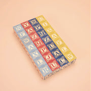 Expand your knowledge of France with Uncle Goose French Language Blocks. Enjoy the embossed fleur-de-lis filigree. This stylized detail surrounds two capital letters on opposing sides of each block. Two other sides show one number and one animal paired with their French translations. Two more hand-crafted letters make four complete alphabets.