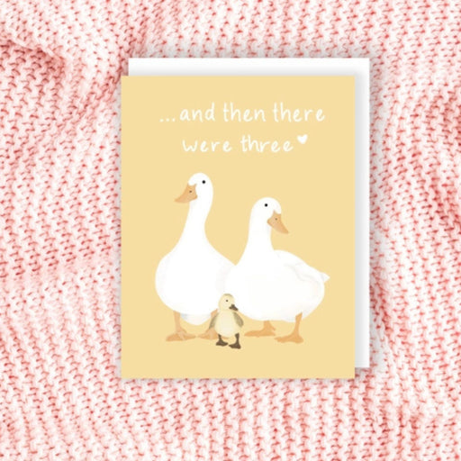 Lines By SarahCelebrate the joy of growing your family with the "..and then there were three" Duck Family Baby Shower Card. Featuring a charming, whimsical illus...