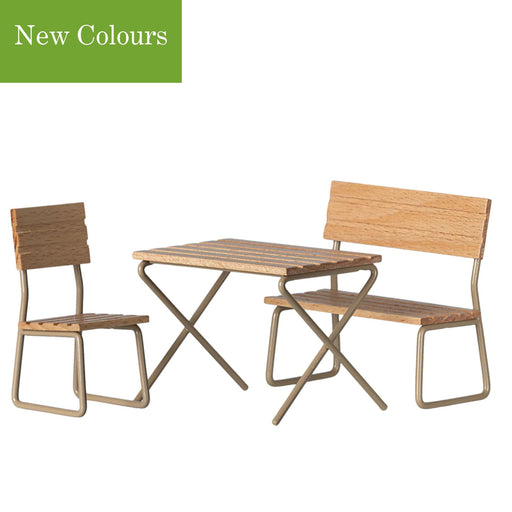MailegDo not forget the outdoor room - this Maileg Garden Set, Table w. Chair + Bench is perfect for all the summer get-togethers. It is made in a vintag...