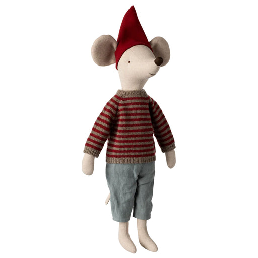 MailegThis sweet mouse in size maxi wears a knitted Christmas hat and socks together with a beautiful red dress - the ears are made in extra thick fabric...