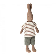 This Rabbit Size2, Brown, Striped Blouse + Pants is made of soft natural fabrics that give a lovely hand feel and look. Size 2 rabbit fits into Maileg Miniature Dollhouse and all furniture sizes mini and miniature. Check out the clothes collection to expand the rabbit's wardrobe.