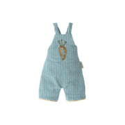This Rabbit, Size 2 Classic in blue striped overalls, is made of soft natural linen and cotton fabric, which gives a lovely hand feel and look. This rabbit wears overalls made in beautiful striped fabric. The size 2 rabbit fits into the Maileg Miniature Dollhouse, and all furniture is mini and miniature. Check out the clothes collection to expand the rabbit's wardrobe.
