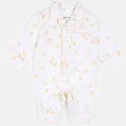 A classic style one-piece made for tiny chicks with big cuddles to give. This Chicks Poplin Sleeper has a classic notch collar with buttons up the front, and easy leg snaps for quick changes. Perfect for twinning with siblings and mom, the one-piece makes egg hunts, lazy easter mornings, and cozy nights egg-stra special.