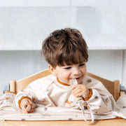 Award-winning Bibado 'No-drop' Handi Cutlery is perfect for making mealtime adventures easier and more enjoyable for everyone. Attach directly to the Bibado Coverall Weaning Bib with the quick and easy poppers and let them keep their grippy fork and spoon close by, no matter how many times they drop them. They'll master independent eating more quickly, and frustration from constantly dropped cutlery will be minimized for both of you!