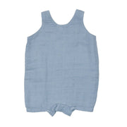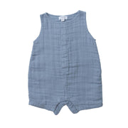 Organic Sleeveless Muslin Shortie Romper, Ocean
