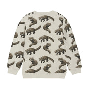 Experience comfort and sustainability with this Organic Sweatshirt Moonbeam. Made from organic cotton, this soft, lightweight sweatshirt offers ultimate comfort and a touch of stretch. Stay stylish and eco-friendly with allover raccoon print.