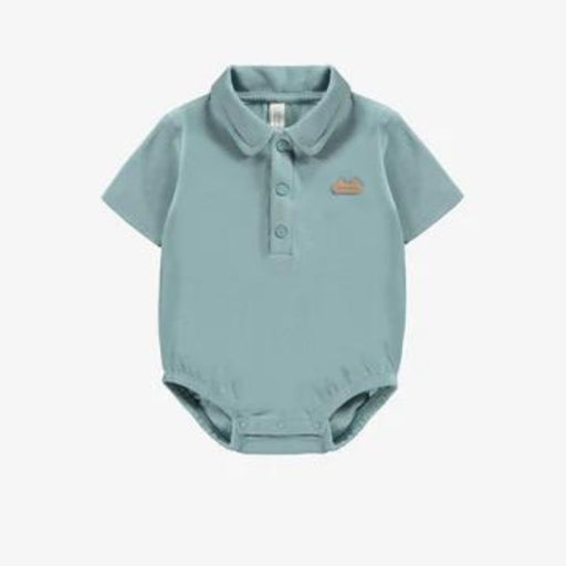 Souris MiniBlue short-sleeved bodysuit, shirt collar with button placket, stretchy rib knit snaps between legs. With a shirt collar for a sporty and casual lo...