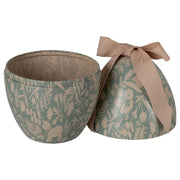 A sweet, soft plush bunny with a vintage cotton collar around the neck, packed in a lovely metal Easter egg with a beautiful print and a big soft bow on top - a perfect gift for the small ones.