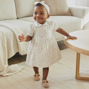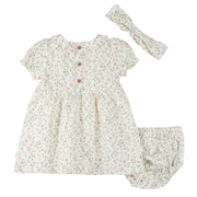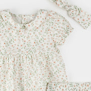 This adorable dress set has everything she needs to feel comfortable and fabulous – a combination we all deserve. Decorated with the Spring Bunnies print, the dress set is perfect for tea parties and special occasions in the warmer seasons. The 3-piece set features a pretty tea dress with a Peter-pan collar, a diaper cover for layering underneath and a matching headband to complete the look. The elasticated pants allow her to twirl, dance and explore comfortably, while the button placket at the back of the dress ensures over-the-head dressing is a total breeze.