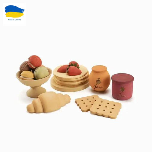 Sabo ConceptThis beautiful Wooden Play Food Set, Desserts from Sabo Concept is one of a kind. It's rustic, natural and tactile with heirloom quality. You can p...