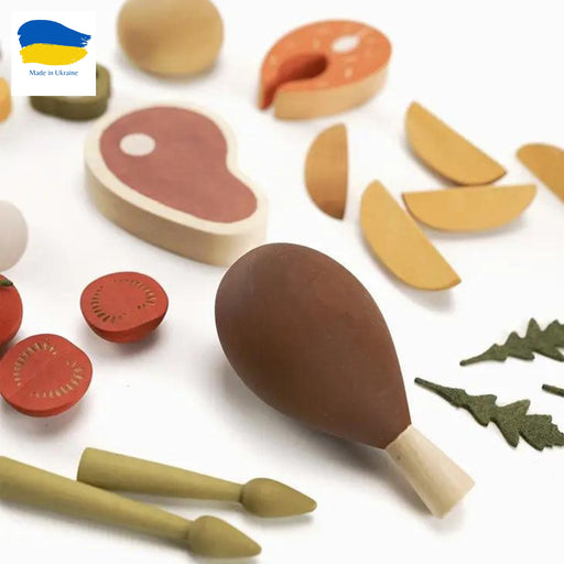 Sabo ConceptYou will fall in love with this detailed Wooden Play Food Set, Dinner from Sabo Concept at first sight. It's rustic, natural and tactile with heirl...