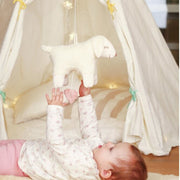 Falling asleep can often be a challenge for children, especially after an exciting day. At such times, a familiar melody, such as Brahms' well-known song "Guten Abend, gute Nacht", can help. The music box sheep can either be hung up in a suitable place or - under parental supervision - taken to bed. Thanks to the high-quality, GOTS-certified materials, it is also safe to put in the mouth..