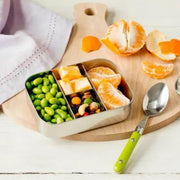 - 4-compartment bento box designed to hold a variety of finger foods.