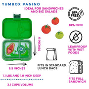 Yumbox Panino is the same compact size but holds more food for growing kids and adults. It’s perfect for school, work and weight-conscious lunches. Prepare balanced healthy meals in minutes!