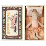 This Princess Mouse, Little Sister in Matchbox - Rose is a classic Maileg item. This mouse is ready for hours of play and sleeps tight in a little matchbox. The clothes and bed linen come in unique prints and beautiful colours.