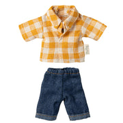 If you need a new set of clothes for your dad mouse, this set will be a good choice. This set consists of a yellow checked shirt and pants.