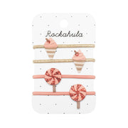 Help yourself to a scoop of our delicious Very Cherry Ice Cream Ponies this summer! Two cherry topped swirled ice cream cones sit upon two gold elastics, whilst two glitter swirled lollies set upon two pink elastics.