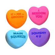 Needoh Squeeze Hearts look like your favourite Valentine's Day candy and, squishes like the Needoh you love. Groovy Needoh sayings like your favourite candy hearts. Four candy squeeze heart sayings, four different colours.