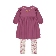 Flared Fit Purple-Pink Crinkle Jersey Dress + Floral Legging Set