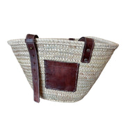 This beautiful classic tote is handcrafted with natural fibres and genuine leather. The handles are super practical. It's perfect for the farmer's market, grocery shopping, the beach, or a picnic.