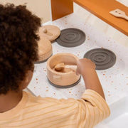 The Wooden Pots and Pans Playset is a must-have for all cooks! Let your little ones invent the most delicious meals and explore the fascinating world of gastronomy!