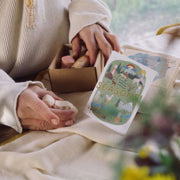 Let’s begin this journey by welcoming the blooming life of Spring with the first seasonal box: Hello Spring with Ostheimer Lamb. The box contains 5 Spring themed pieces: 2 Tuplip mandalas, 1 Nin, 1 Press (w/ papers and rubber band) and 1 Miniature Lamb.