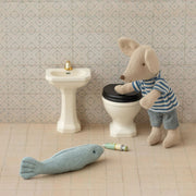 A small sink that fits the Little sister/brother mice. It fits perfectly into the bathroom in the SuitCasa mouse house. Add to your play theme with other coordinating pieces from our Maileg Mice Collection