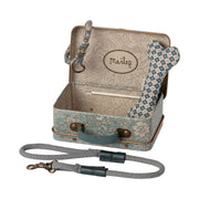 The set comes in a Maileg signature tin suitcase, including bone, leash and collar
