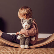 The Floppy Small Cat Animal Doll in Grey from the "Floppy animals" collection by Senger Naturwelt perfectly combines cosy cuddles and stylish decoration. With GOTS-certified materials from Europe, it offers the highest quality and sustainability and delights young and old alike. A long-lasting companion for unforgettable cuddly moments!