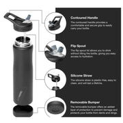 The Summit - 24 oz Bottle with Straw Top is perfect for life on the go, its ergonomic shape and straw top make it easy to grip and sip whether you're on the trails, practicing yoga or cruising around town. Plus, its insulation will keep your drinks cold up to 36 hours. Stay hydrated with one-handed tilt-free drinking.