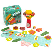 - Set contains a Wooden ketchup bottle, 2 wooden burger buns, 36 wooden burger fillings, a die and instructions.