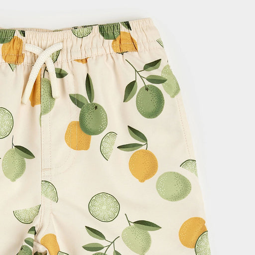 Petit LemThese Citrus Print Swim Trunks are a vacation staple. The fresh and fruity shorts coordinate with the green long-sleeved rashguard from the same ra...