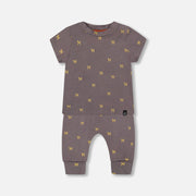 Organic Cotton Short Sleeve Top + Evolutive Pant Set, Pixel Dog