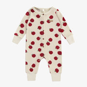 One-Piece Ribbed Knit Pajamas with Apples Print