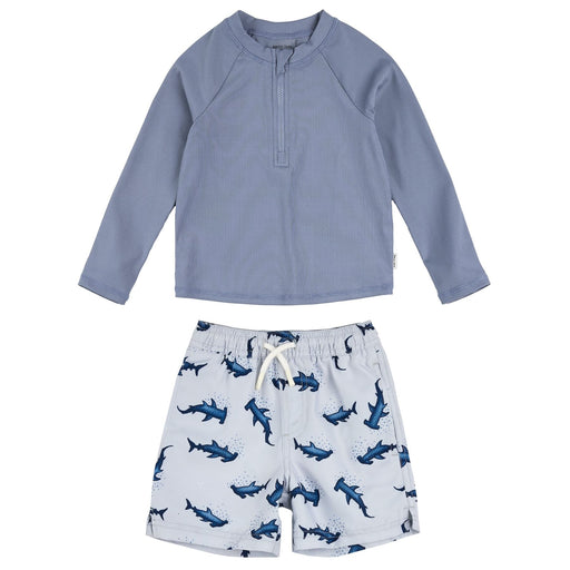 View full detailsRibbed Long Sleeve Rashguard + Swim Trunks Set, Hammerhead Shark