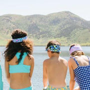 Splash Swim Goggles features a tangle-free, patent-pending strap in fun colour prints with a white frame and lightly tinted blue lenses.