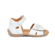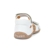 Froddo Gigi Closed Heel Sandal, White Daisis is an open-toe sandal with adjustable velcro closure and foot strap. Soft leather upper and lining, leather insole and non-slippery rubber sole make this sandal comfortable and ideal for long summer days. Great for play or leisure walks.