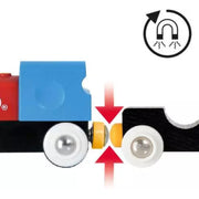 Start by building a track layout with the mountain blocks and the tunnel, then let your train go up and down and through the tunnel. Press the arrow button on top of the engine and the train starts to move by itself. The wagon with the spinning wheel gives an extra bit of fun to this brilliant 'My First' set.