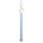 The perfect solution to storing and organizing hair clips in one place - the Rainbow Unicorn Clip Hanger clip hanger has a hanging loop that can be hung on a door or wall hook. The unicorn hanger is made in shimmery white glitter with a coloured mane and gold horn. Simply snap on your clips, ready to wear again next time!