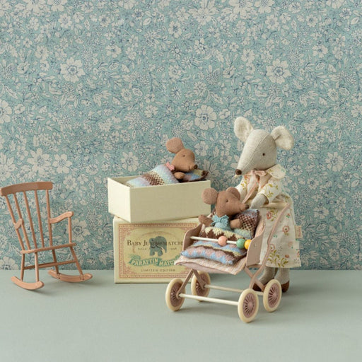 MailegThis Maileg Baby Mouse Stroller is perfect for mouse families with more than one baby. You can easily transport two or three babies. The seat can b...