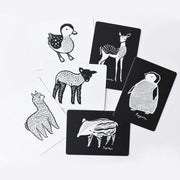- Each box set contains six matte laminated cards with rounded corners. Each card features two animals on one side with white and the other with a black background.