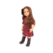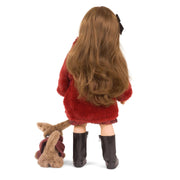 Celebrate Gotz's anniversary with the exclusive doll Hannah Jubilee and Her Dog Polly. Dressed in elegant Bordeaux red, she wears a plush jacket over a sparkling sequin dress, black boots, and a cute hair bow. Her loyal dog is also stylishly wrapped in a Bordeaux red cape. This anniversary edition is truly special and perfect for special occasions. A must-have for doll lovers.