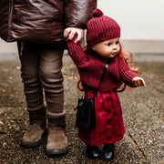 To mark the 75th anniversary, Precious Day Julia Jubilee is dressed in a stylish ensemble featuring a burgundy skirt, sweater, and knit hat. A black shoulder bag and elegant boots complete the high-quality outfit. This anniversary edition stands out with its exceptional craftsmanship, premium materials, and timeless design – ideal for discerning buyers who value quality, durability, and thoughtfully designed toys.